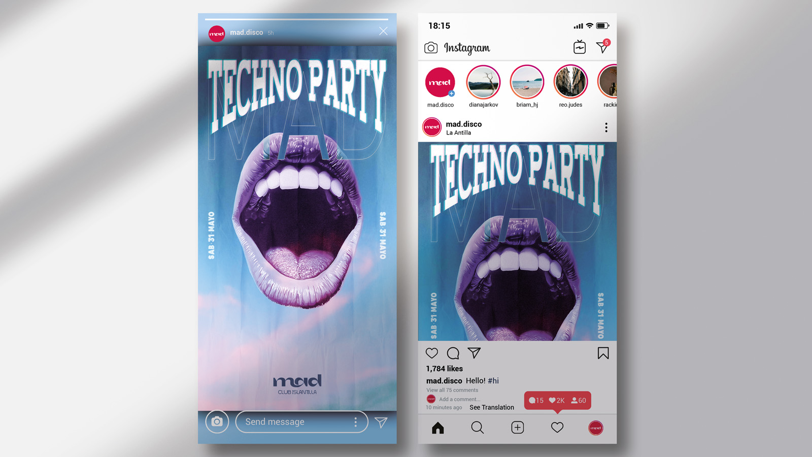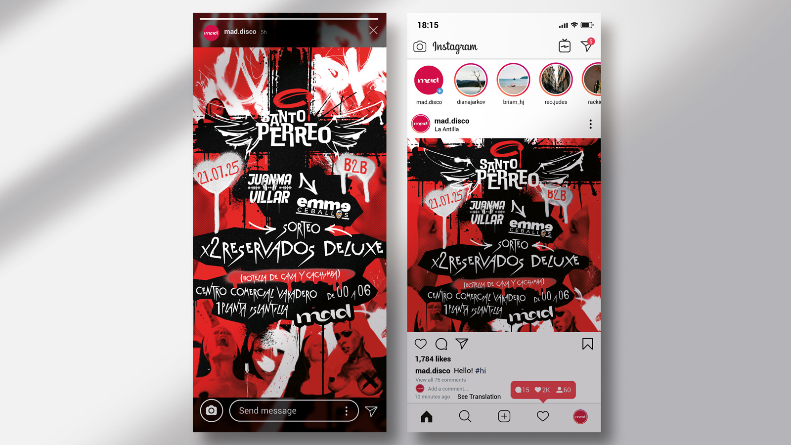 Each piece was adapted to digital platforms and social formats, ensuring high visibility, clarity, and engagement in fast-paced environments. The visual approach embraces contrast, saturated colors, and strong imagery to transmit rhythm, fun, and personality, positioning MAD Club as a dynamic and versatile nightlife brand.