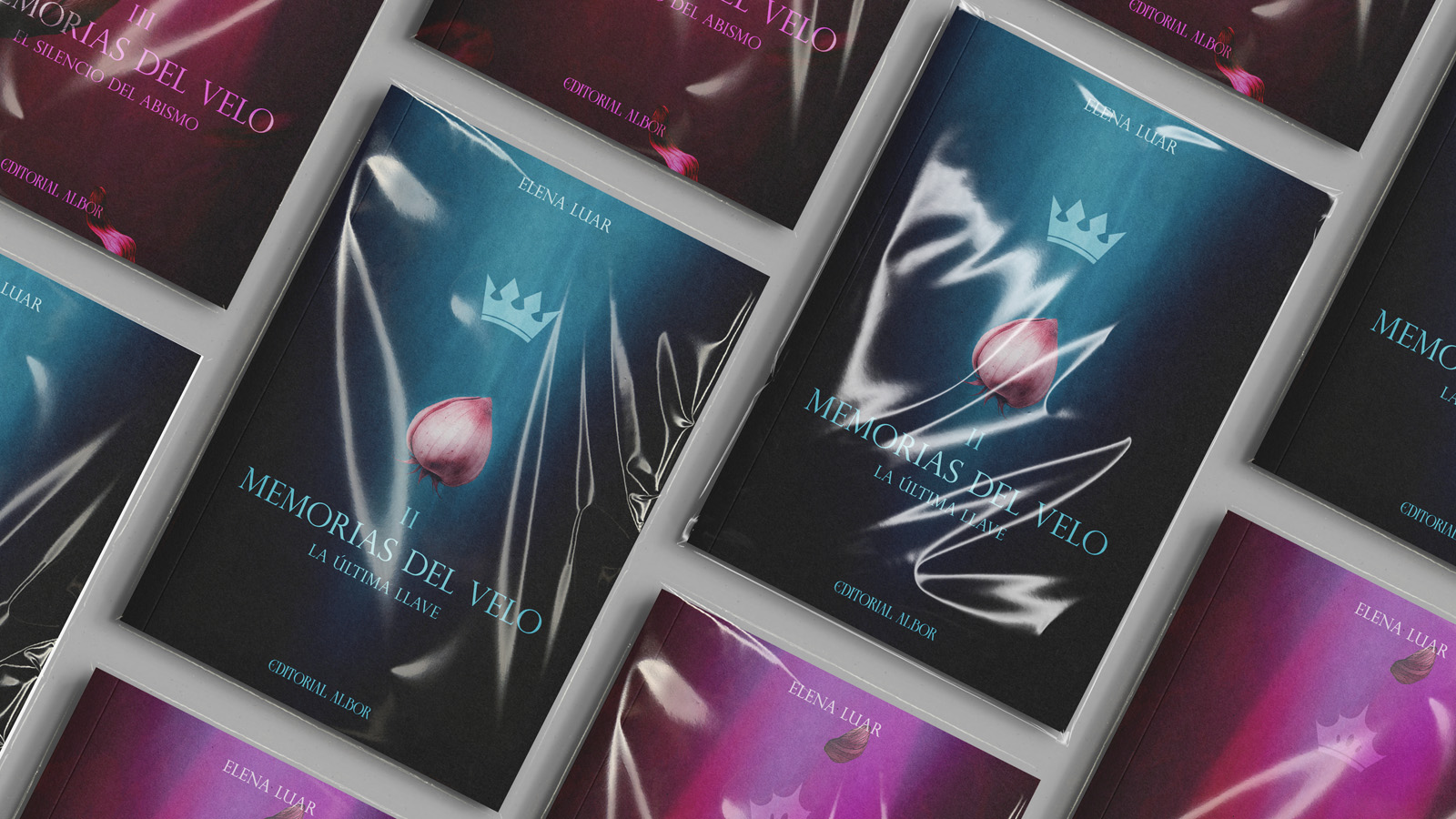 The main challenge was to visually translate the narrative universe of the story while maintaining a coherent identity across all editions. Each cover was conceived as a fragment of the same world, preserving a sense of continuity while introducing subtle variations that reflect the evolution of the story.